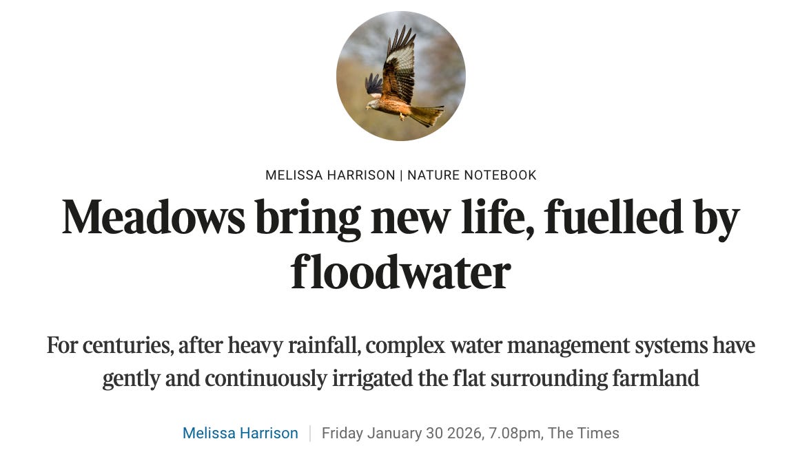 I wrote for The Times about our local river bursting its banks (as it often does in winter), and about trying and failing to see a congregation of roosting kites. You can read my piece here: it’s sometimes paywalled, sometimes not; or it is for some people and not others. Honestly, god knows.