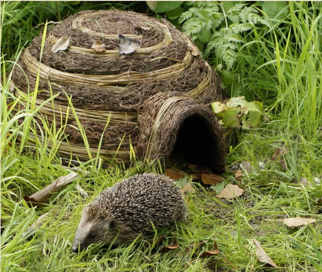 👉🏼 A thing that made me go ‘hmm’: This week I learned that there are some kinds of hedgehog house (below) that can actually kill hedgehogs: amazing work, humans, give yourselves a slow handclap. If you’d like to buy a Christmas present for a wildlife gardener (or for yourself), Kate Bradbury has rounded up the best (non-lethal) hog houses, bird boxes, bee hotels, swift bricks and bat boxes: the ones that will stand up to the weather and actually help wildlife rather than just making you look like a good person. Her excellent list can be found here.